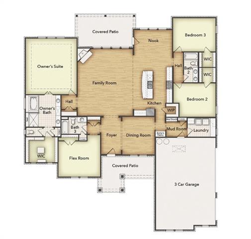 Estimated April 2026 completion! Ask us about our Trade In Trade Up Program, we can buy your home if you buy ours! Discover an exceptional lifestyle in the Mockingbird—a masterpiece of modern living by our team at Riverside Homebuilders. This sprawling single-story sanctuary spans 3,104 square feet and offers 4 bedrooms and 3 bathrooms, perfectly curated for a life of luxury and comfort. As you enter through the charming covered porch, the foyer beckons you inside, setting the stage for the grandeur that lies within.To the left, a versatile flex room stands ready to evolve into your personalized haven, whether it be a home office, gym or creative space. To the right, an elegant dining room awaits, ready to host cherished moments with loved ones. Continue through to the heart of the home, where the main living area unfolds—a vast family room with a cozy fireplace, an inviting nook and a chef-inspired kitchen boasting an elongated island, ideal for culinary adventures and entertaining. On the left side of the home, discover the secluded owner's suite, offering unparalleled privacy and tranquility. Enjoy the luxury of a spacious walk-in closet and a serene bathroom, creating an oasis of relaxation. On the opposite side, two traditional bedrooms await, each complete with its own walk-in closet, accompanied by a shared bathroom—perfect for siblings or guests. Functionality reigns supreme with the laundry and mudroom conveniently situated just off the garage entrance. Finally, step outside to the expansive covered patio, seamlessly blending indoor and outdoor living and promising endless opportunities for relaxation and recreation. In the Mockingbird, luxury meets functionality, offering an unparalleled living experience for homeowners in DFW.