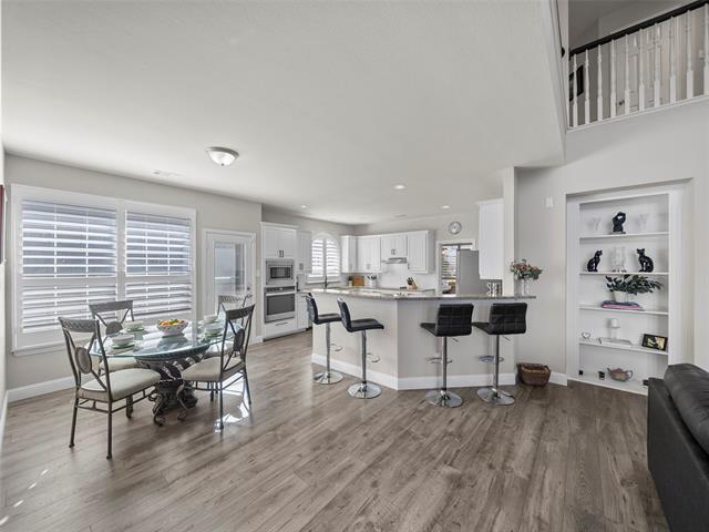 Beautiful and well-maintained home with numerous updates completed, including a high-efficiency AC and furnace installed 2022, roof replacement 2023, kitchen appliances 2021, an upstairs bathroom renovation completed 2023, new flooring throughout the downstairs and stairs in 2023, a fireplace hearth update in December 2023, plantation shutters, front and rear exterior doors replaced, exterior paint completed 2025, and a primary shower update in 2026.The home features granite countertops, energy-efficient upgrades such as a 16-SEER AC, radiant barrier, newer windows, and attic storage. Dual staircases provide functional flow and architectural interest. The front of the home offers abundant natural light, while stacked formal living and dining spaces create a flexible layout for entertaining. Built-in shelving, tray ceilings, and a fireplace add character throughout. The upstairs living area includes a window alcove that adds charm and flexibility to the space. The primary bedroom features a bay window that enhances natural light, along with a spacious bath offering a jetted tub, dual sinks, and an updated shower. Outdoor living is ideal for entertaining with generous concrete decking around the pool, offering ample space for seating and BBQs. An outdoor shed provides additional storage. Conveniently located near shopping, dining, and entertainment.